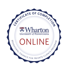 Karen completed the Wharton School’s Behavioral Finance for Private Clients Program, a specialized course designed for financial professionals who want to deepen their understanding of how human behavior impacts financial decision-making. This advanced program explores the latest research in psychology, behavioral economics, and the human sciences, equipping advisors with evidence-based tools to better recognize client biases, improve communication, and support more thoughtful, goal-aligned financial planning. Karen integrates these insights into her practice to offer a more personalized, client-centered approach to wealth management.